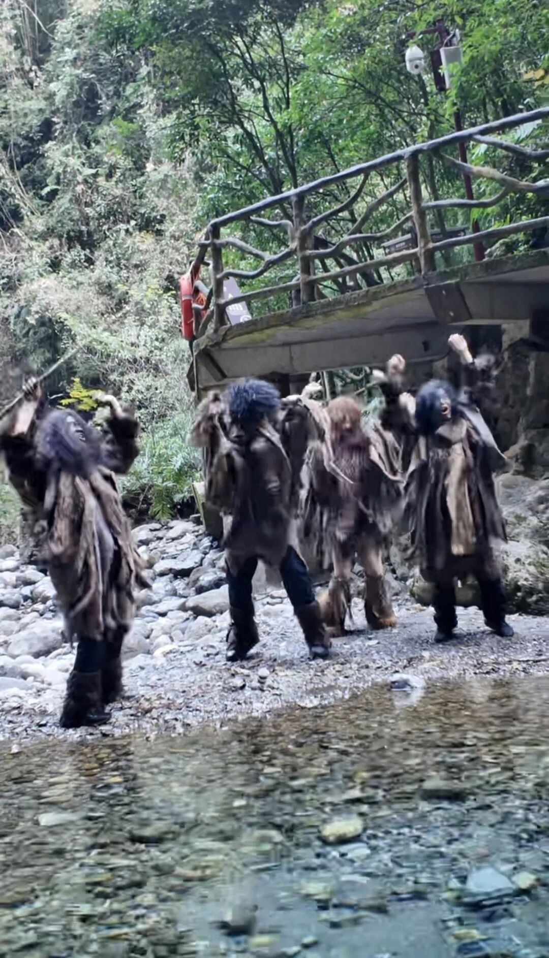 达州巴山大峡谷里“野人”NPC和游客互动。(受访者供图)